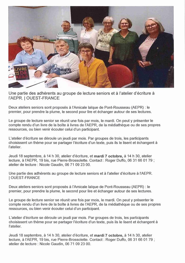 L'Amicale Laïque de Pont-Rousseau, AEPR (Anciens Élèves de Pont-Rousseau) propose aujourd'hui des disciplines sportives et des activités artistiques et de loisirs en 12 sections.